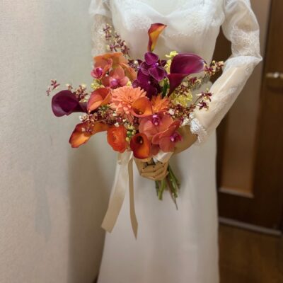 オレンジ×ワイン、華やかさと品のある大人花嫁様のブーケです♡ウェデングブーケ専門店