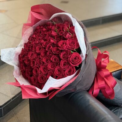 一生に一度の大切なプロポーズ。その特別な瞬間を彩るために、赤バラ108本のサプライズ花束をご注文いただきました。