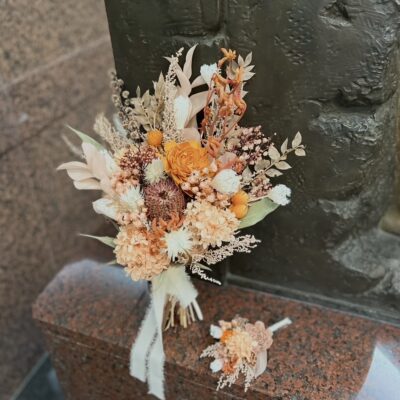 プリザード&ドライフラワーのクラッチブーケ
