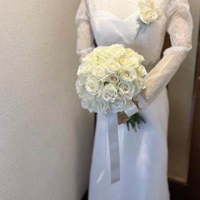 重厚感のあるドレスに負けない品格のあるブーケです