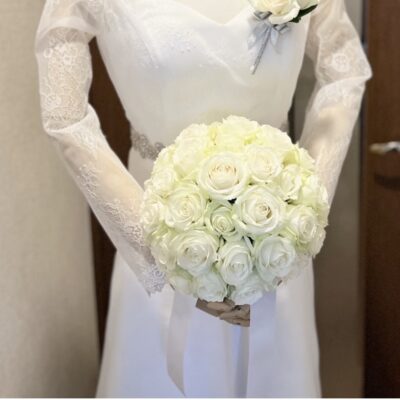 白バラのクラッチブーケ|清楚で上品な花嫁を叶えるウェディングブーケ【名古屋市内限定】♡ウェデングブーケ専門店