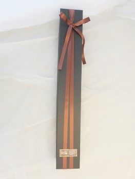 リボンは、サテンのブラウンです