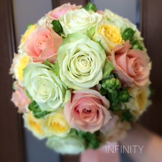 エメラルドグリーンのドレスに合うブーケです~ウエディングブーケ専門店