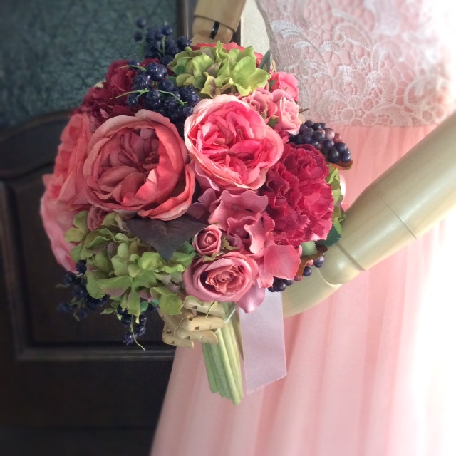 アートフラワーのキャスケードブーケです
