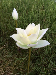 夏に咲くハスの白い花が一輪咲いている