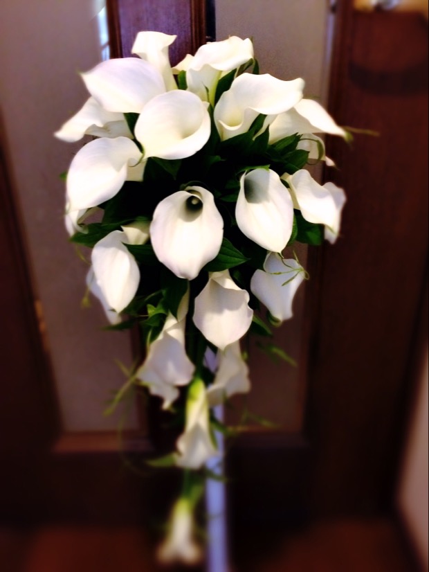 カラーのキャスケードブーケです~ウエディングブーケ専門店