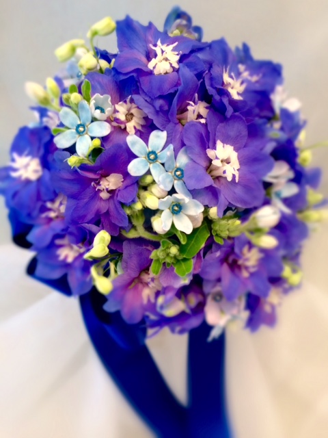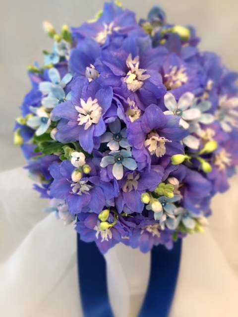お花は、デルフィニューム、ブルースターです