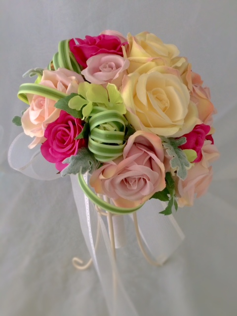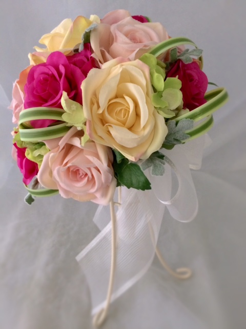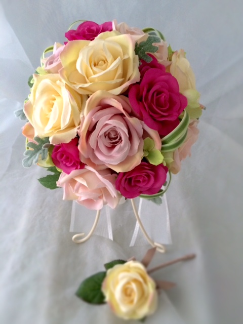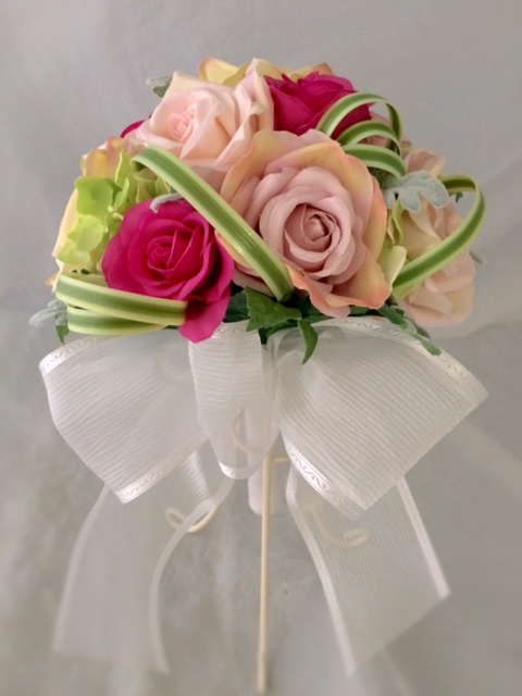アートフラワーのピンク色のラウンドブーケです~ウエディングブーケ専門店