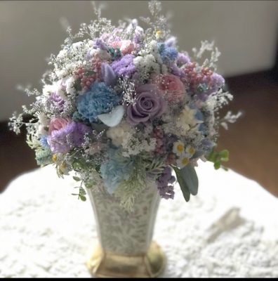 プリザーブドフラワー&ドライフラワーmixして束ねました