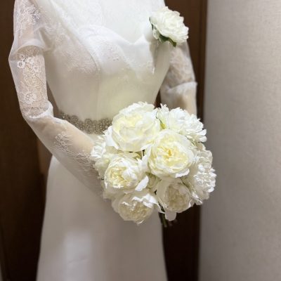 品格のある華やかさ、白い芍薬のクラッチブーケです♡ウェデングブーケ専門店