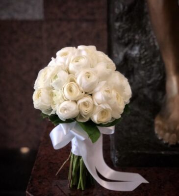 存在感のある花姿と優雅な香りが、花嫁様の美しさを一層引き立てます。