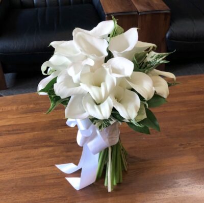 白いカラー(Calla Lily)は、シンプルでありながら気品を感じさせるウェディングフラワーの代表格です。