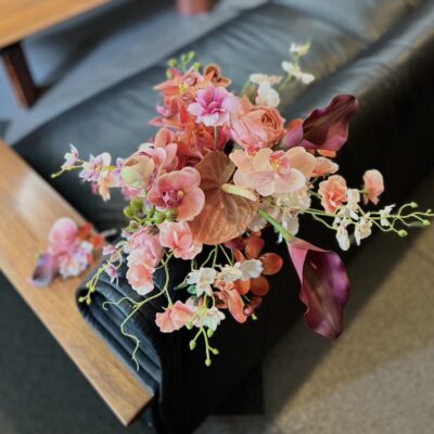 アンスリュームの艶やかな質感が、ブーケに都会的でスタイリッシュな雰囲気を与えます。