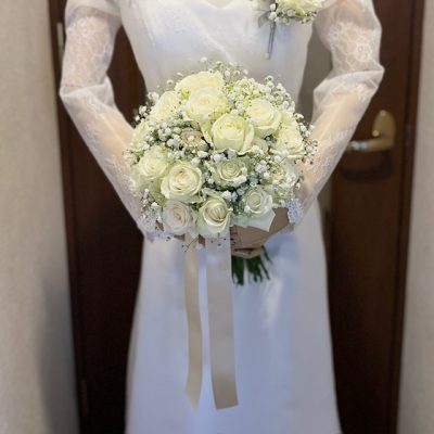 バラとかすみ草のクラッチブーケです♡ウェデングブーケ専門店