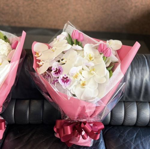 生花胡蝶蘭の花束 胡蝶蘭、季節の花を使用